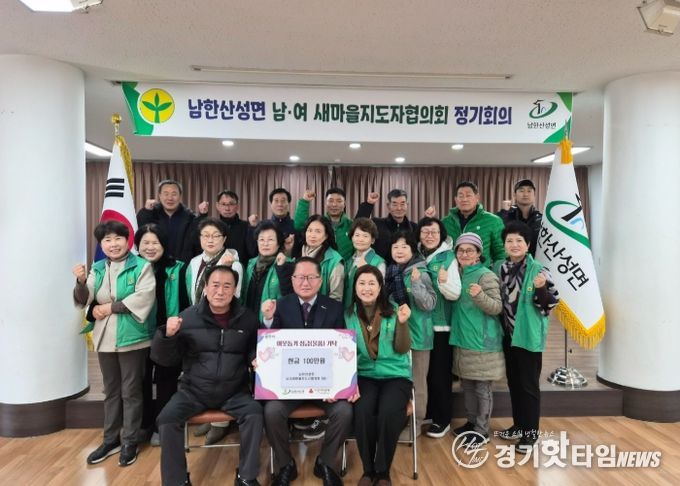 [경기핫타임뉴스=김삼영 기자] 광주시 남한산성면 남녀새마을지도자협의회는 8일 남한산성면 행정복지센터를 방문해 어려운 이웃을 위해 사용해 달라며 이웃돕기 성금 100만 원을 기탁했다.