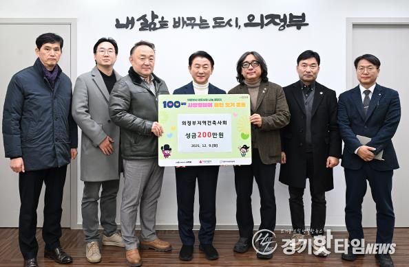[경기핫타임뉴스=김형철 기자] 의정부시는 12월 9일 의정부지역건축사회가 ‘100일간 사랑릴레이 배턴 잇기’에 동참해 성금 200만 원을 기부했다고 밝혔다.