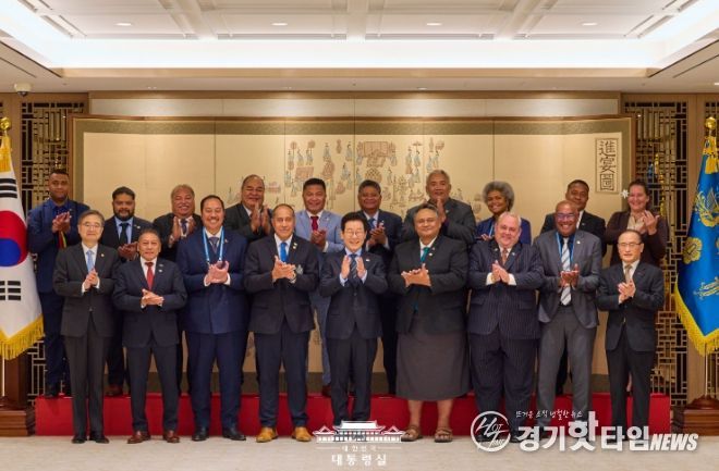 [경기핫타임뉴스=김삼영 기자] 이재명 대통령은 12월 10일 오전, 대통령실에서 제6차 한-태평양도서국 외교장관회의 참석을 위해 방한한 태평양도서국 외교장관 일행을 접견했다.