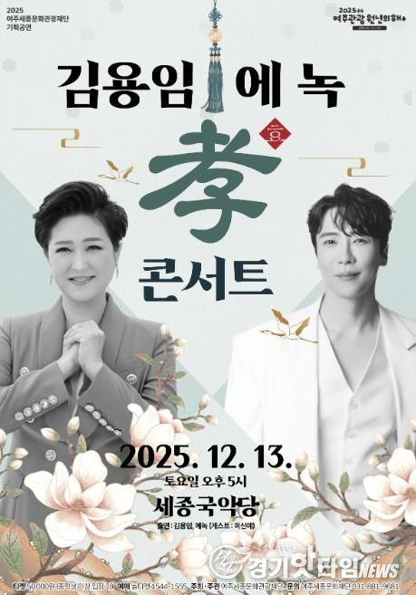 [경기핫타임뉴스=김형철 기자] 여주세종문화관광재단이 오는 12월 13일, 세종국악당에서 '김용임 & 에녹의 효 콘서트'를 선보인다.