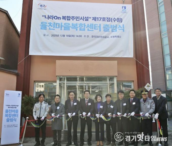 [경기핫타임뉴스=김삼영 기자] 수원시 장안구 율천동은 지난 18일 한국자산관리공사(캠코)와 함께 ‘나라On 율천마을복합센터’ 출범식을 개최했다고 밝혔다.