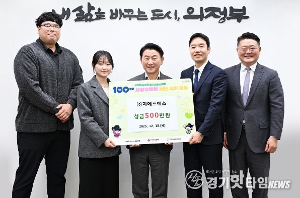 [경기핫타임뉴스=김형철 기자] 의정부시는 12월 18일 관내 기업 ㈜지에프에스가 지역사회 나눔 실천의 일환으로 성금 500만 원을 기탁했다고 밝혔다.