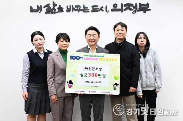 [경기핫타임뉴스=김형철 기자] 의정부시는 12월 18일 ㈜선진소방이 ‘100일간 사랑릴레이 배턴 잇기’에 동참해 지역 내 취약계층 지원을 위한 성금 300만 원을 기탁했다고 밝혔다.