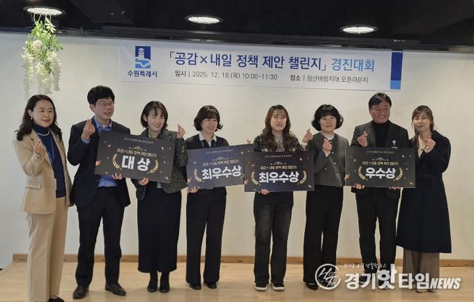 [경기핫타임뉴스=김삼영 기자] 수원특례시가 개최한 ‘2025 공무원 대상 제안 공모전 '공감×내일 정책 제안 챌린지' 경진대회’에서 ‘신(新)사장 과태료 0원 프로젝트(찾아가는 원산지 안심 컨설팅)’가 대상을 받았다.