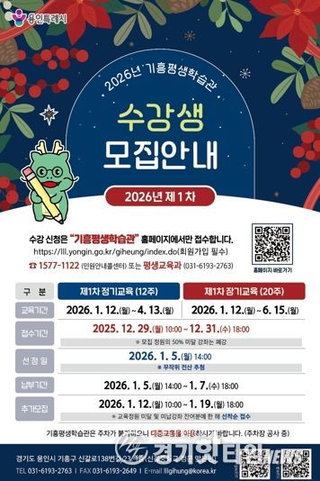 [경기핫타임뉴스=김삼영 기자] 용인특례시 기흥평생학습관은 29일부터 31일까지 생성형 인공지능(AI), 웃음치료사, 영어 등 ‘2026년 제1차 정기·장기교육’ 수강생을 모집한다고 21일 밝혔다.