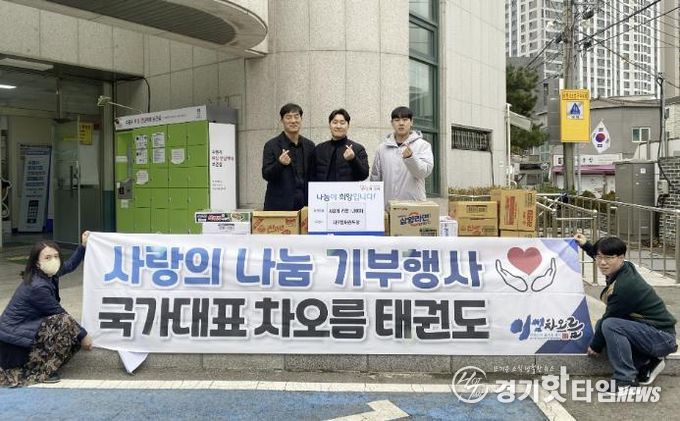 [경기핫타임뉴스=김삼영 기자] 수원시 장안구 정자1동 소재 국가대표차오름태권도장은 지난 19일 추운 겨울 연말을 맞아 주변 어려운 이웃과 따뜻한 정을 나누고자 라면 1,000개를 모아 정자1동 행정복지센터에 기부했다.
