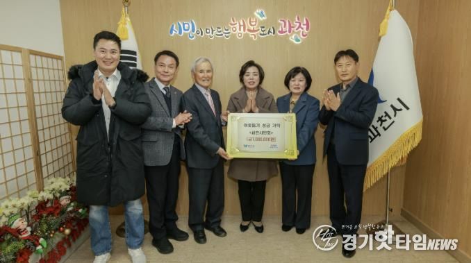 성금 전달식은 이날 시청 시장 집무실에서 열렸으며, 신계용 과천시장과 과천시민회 신원수 회장, 강대희 부회장을 비롯한 관계자들이 참석했다.