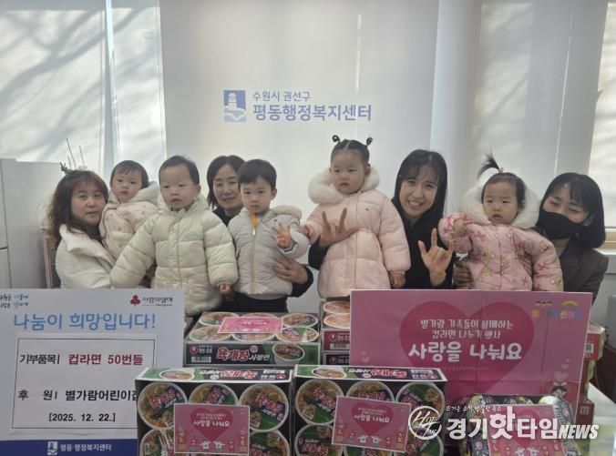 [경기핫타임뉴스=김삼영 기자] 지난 22일 별가람어린이집에서는 연말연시를 맞이하여 이웃 돕기 후원 물품 컵라면 50 상자를 평동 행정복지센터에 전달했다.