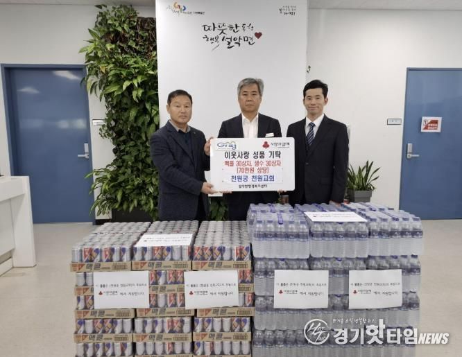이번 성품은 경기사회복지공동모금회를 통해 관내 소외된 이웃에게 사용될 예정이다. 천원교회는 수년 전부터 저소득층을 위해 후원물품 나눔과 지역 어르신 식사 제공, 다문화가정 행사 등 이웃사랑에 앞장서고 있다.