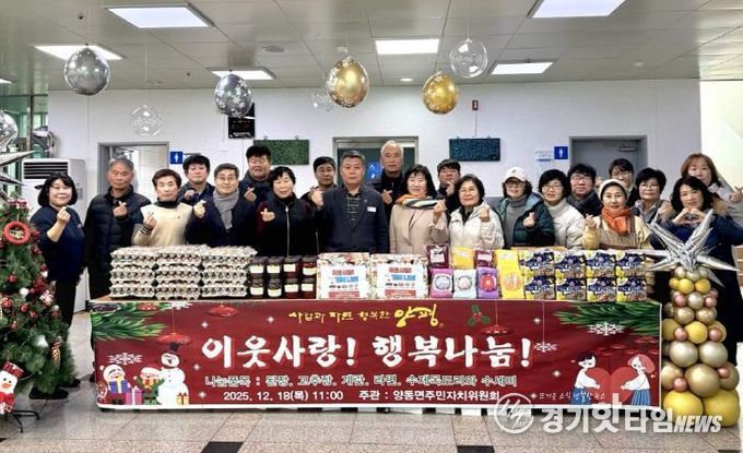 [경기핫타임뉴스=김형철 기자] 양동면 주민자치위원회는 지난 18일 양동면 주민자치센터에서 연말을 맞아 이웃사랑과 행복 나눔을 실천하기 위한 물품 나눔 행사를 가졌다.