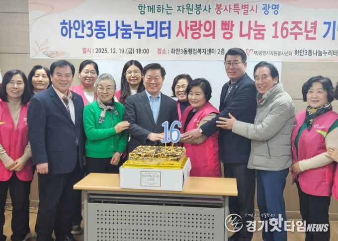 [경기핫타임뉴스=김삼영 기자] 광명시 하안3동 나눔누리터는 광명시자원봉사센터, 하안3동 행정복지센터와 함께 지난 19일 하안3동 행정복지센터 2층 회의실에서 ‘사랑의 빵 나눔’ 16주년 기념식을 개최했다.