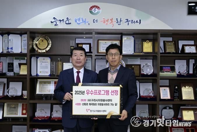 [경기핫타임뉴스=김형철 기자] 사단법인 구리시자원봉사센터는 12월 22일, 경기도자원봉사센터 공모사업인 ‘2025 지역맞춤형 지원사업’ 시군 네트워크 분야에서‘산 따라 계곡 따라, 자원봉사 하러 가는 길!’ 프로그램이 우수사업으로 선정됐다고 밝혔다.