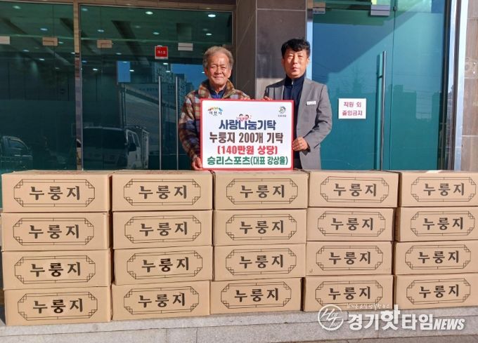 [경기핫타임뉴스=김형철 기자] 장호원읍은 지난 22일, 승리스포츠(대표 강상율)가 누룽지 200개를 기탁했다고 밝혔다.