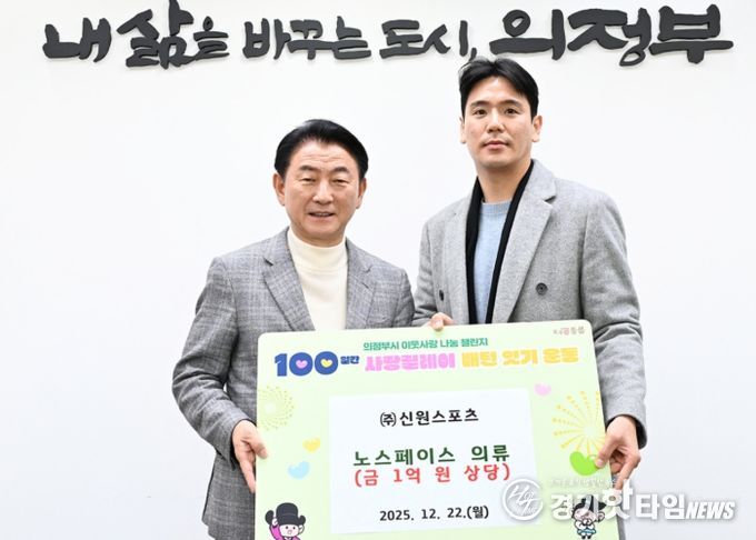 [경기핫타임뉴스=김형철 기자] 의정부시는 12월 22일 ㈜신원스포츠 노스페이스 양주점(LF스퀘어몰)과 포천송우점이 관내 아동복지시설에 아동용 의류 및 가방 등 1억 원 상당의 물품을 기부했다고 밝혔다.