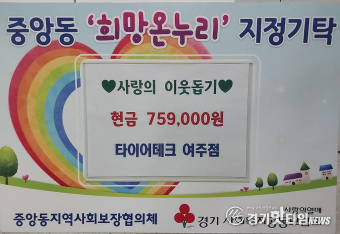 [경기핫타임뉴스=김형철 기자] 타이어테크 여주점은 지난 23일 연말을 맞아 지역사회 취약계층을 돕기 위해 성금 75만9천원을 중앙동행정복지센터에 기탁했다.