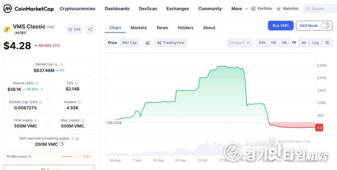 출금정지처분의 결정적 요인은 자체 발행한 VMC 코인이 불법매도된 사건이다. 2025년7월에 최초 미국 거래소인 Bitmart 에 상장한 VMC 는 상장가 $10을 시작으로 높은 상장 시작가임에도 불구하고 2개월만에 $600 대를 돌파했다. 사건이 터지기 11월4일 전까지는 $2,400 까지 넘어서는 놀라운 기록을 보였지만 결국 불법매도가 시작된 LBank 가 빅토리아 거래소를 금융당국에 신고하면서 현재는 상장가 미만으로 가격이 폭락하게 되는 희대의 사건으로 전락하고 말았다.