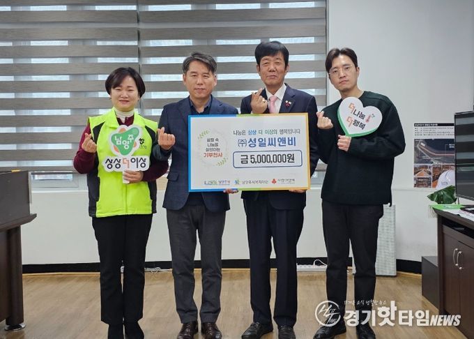[경기핫타임뉴스=김형철 기자] 남양주시는 지난 23일 오남읍사무소에서 ㈜성일씨앤비가 연말을 맞아 오남읍 취약계층 지원을 위해 후원금 500만 원을 남양주시복지재단에 기부했다고 밝혔다.