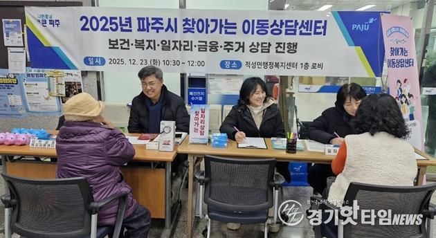 [경기핫타임뉴스=김형철 기자] 파주시는 지난 23일 적성면 행정복지센터에서 정보 취약계층을 대상으로 보건, 복지, 일자리, 금융, 주거 등 5개 분야를 한자리에서 상담하는 ‘찾아가는 이동상담센터’를 운영했다고 밝혔다.