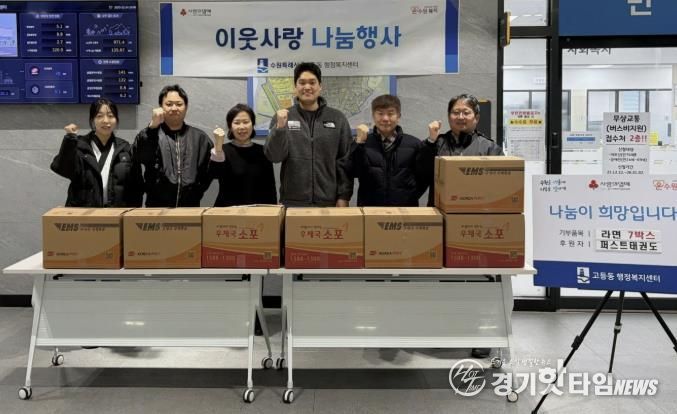 [경기핫타임뉴스=김삼영 기자] 수원시 팔달구 고등동은 12월 24일, 관내 퍼스트 태권도장에서 연말을 맞아 어려운 이웃을 위해 라면을 기부했다고 밝혔다.