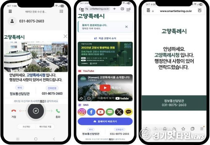 [경기핫타임뉴스=김형철 기자] 고양특례시는 ‘거점형 스마트 조성 사업’의 일환으로 행정전화에 대한 시민 신뢰도를 높이고 민원 응대 효율을 개선하기 위해 ‘스마트 레터링 서비스'를 구축했다고 26일 밝혔다.