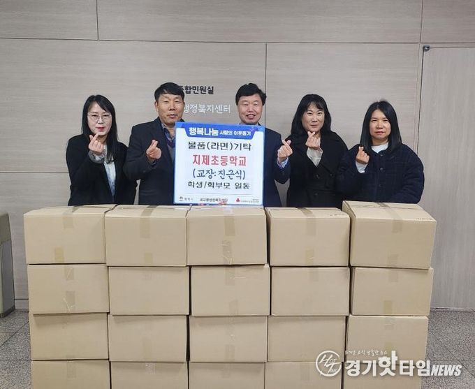 [경기핫타임뉴스=김삼영 기자] 연말을 맞아 평택 지제초등학교 학부모회가 지난 24일, 따뜻한 마음 담은 라면 20박스를 평택시 세교동 행정복지센터에 기부했다.