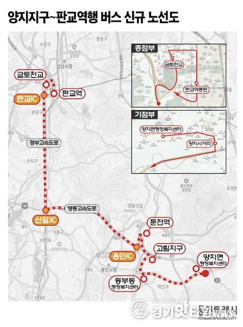 [경기핫타임뉴스=김삼영 기자] 용인 양지지구를 출발해 고림동과 둔전역을 거쳐 성남 판교역까지 운행하는 버스 노선이 확정됐다.
