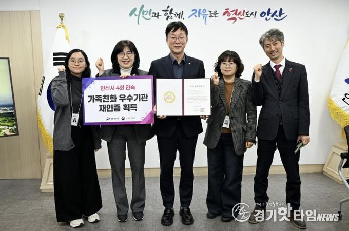 [경기핫타임뉴스=김삼영 기자] 안산시는 올해 성평등가족부가 선정하는 ‘가족친화 우수기관 재인증’을 4회 연속 획득했다고 29일 밝혔다.
