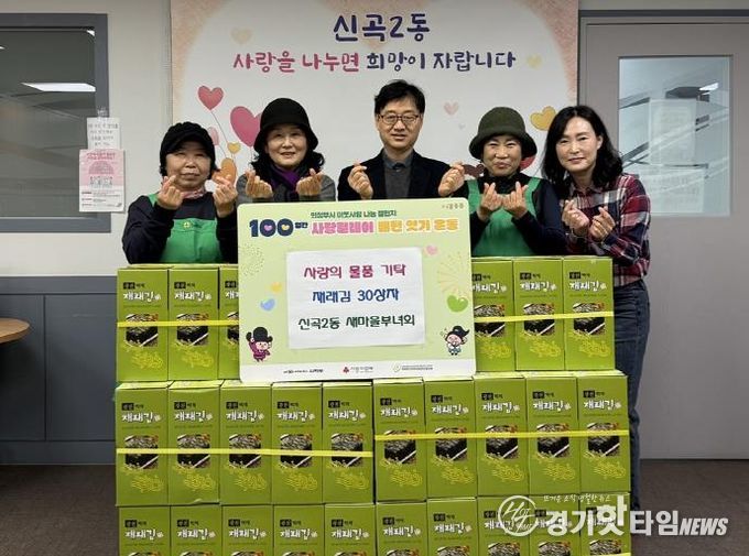 [경기핫타임뉴스=김형철 기자] 의정부시 신곡2동주민센터는 12월 24일 신곡2동새마을부녀회가 도시락김 30상자를 기탁하며 ‘100일간 사랑릴레이 배턴 잇기’에 동참했다고 밝혔다.