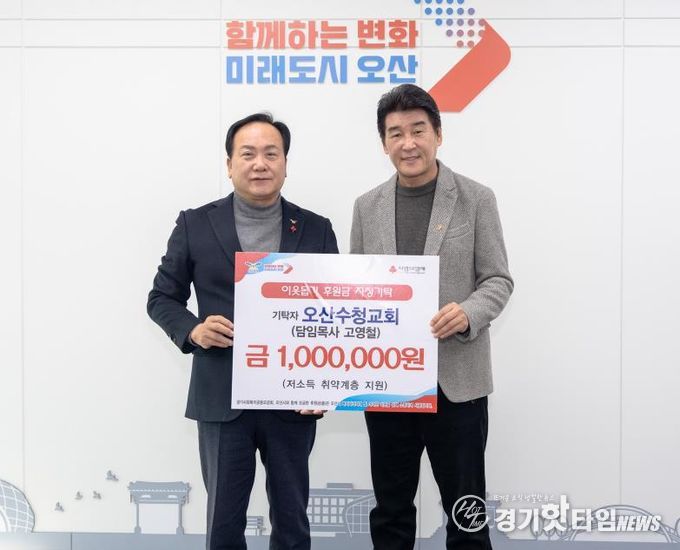 [경기핫타임뉴스=김삼영 기자] 오산시는 지난 26일 오산수청교회가 희망2026나눔캠페인에 동참해 관내 취약계층 지원을 위한 성금 100만 원을 기탁했다고 밝혔다.