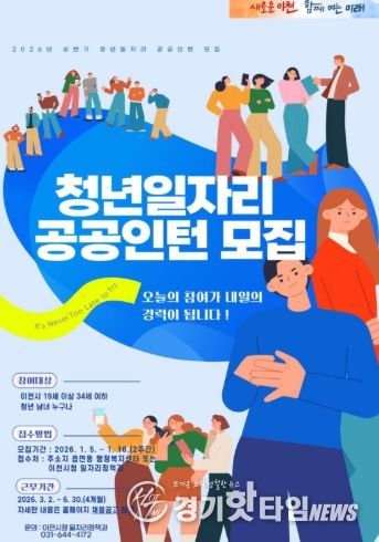 [경기핫타임뉴스=김형철 기자] 이천시는 2026년 1월 5일부터 1월 16일까지 ‘청년일자리 공공인턴사업’의 상반기 참여자 47명을 모집한다.