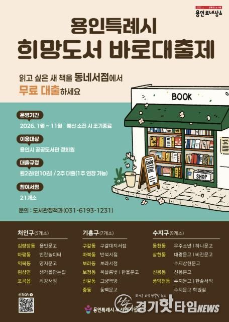 [경기핫타임뉴스=김삼영 기자] 용인특례시는 시민들의 높은 호응을 얻었던 희망도서 바로대출제를 내년 1월 2일부터 시행한다고 30일 밝혔다.