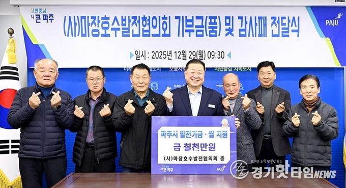 이날 기탁식에서는 김경일 파주시장과 ㈔마장호수발전협의회 남종희 이사장 및 관계자들이 참석해 지역사회의 나눔 가치 실현과 상호 협력 의지를 확인했다.