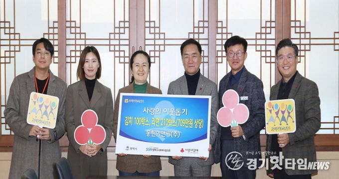 [경기핫타임뉴스=김삼영 기자] 동현이앤씨㈜은 지난 24일 김장김치 100박스 및 라면 210박스(709만 원 상당)를 평택행복나눔본부에 전달했다.