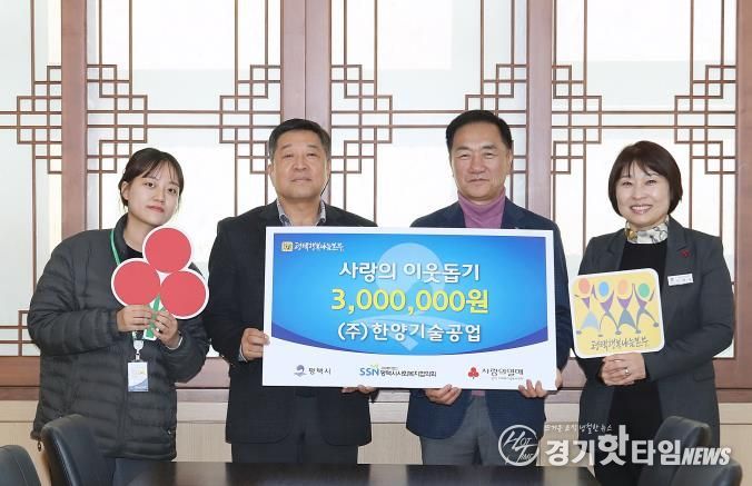 [경기핫타임뉴스=김삼영 기자] 평택시 서탄면에 있는 ㈜한양기술공업은 관내 취약계층 지원을 위한 성금 300만 원을 평택시청 대외협력실에서 평택행복나눔본부에 전달했다.