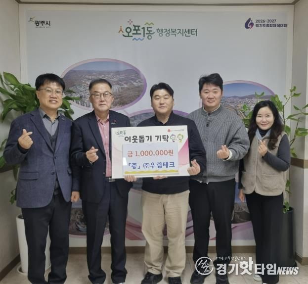 [경기핫타임뉴스=김삼영 기자] ㈜우림테크 임택현 대표는 30일 지역 내 어려운 이웃을 위해 사용해 달라며 성금 100만 원을 광주시 오포1동 행정복지센터에 전달했다.
