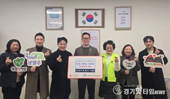 [경기핫타임뉴스=김형철 기자] 남양주시는 30일 다산행정복지센터에서 ㈜에이트랙스 에프앤비가 지역 아동을 위한 과채주스 432박스를 전달했다고 밝혔다.