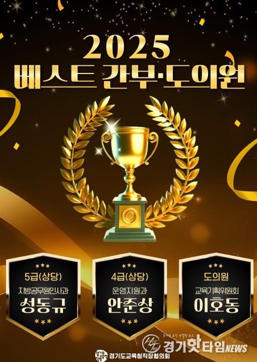[경기핫타임뉴스=김삼영 기자] 경기도교육청 직장협의회는 소통과 협력을 기반으로 한 조직문화 정착과 활기찬 직장 분위기 조성을 위해 '2025년 베스트 간부 및 경기도의원'을 선정했다고 12월 30일 밝혔다.