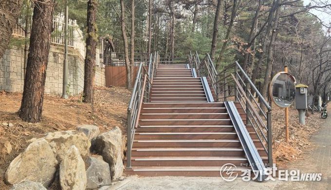 구는 기존 계단을 철거한 뒤 폭 3m, 길이 28m의 계단을 설치했다. 계단에 안전 손잡이와 자전거 경사로 등 시설도 새로 만들었다.