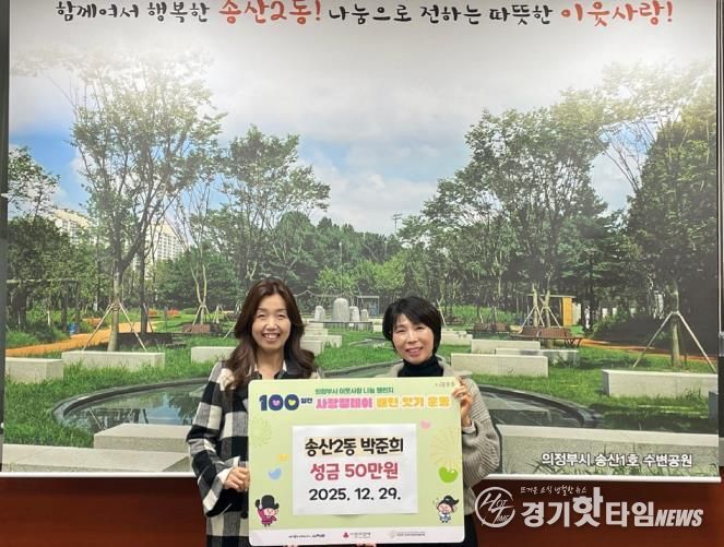 [경기핫타임뉴스=김형철 기자] 의정부시 송산2동주민센터는 12월 29일 송산2동 지역사회보장협의체 박준희 부위원장이 어려운 이웃을 돕기 위해 성금 50만 원을 기탁했다고 밝혔다.