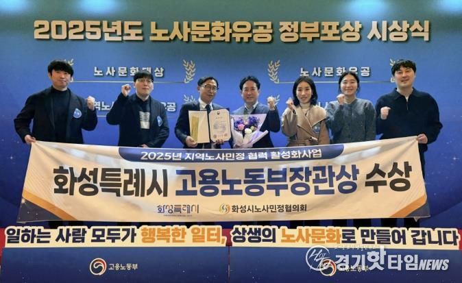 [경기핫타임뉴스=김삼영 기자] 화성특례시는 지난 30일 고용노동부 주관으로 열린 '2025년 노사문화유공 정부포상 시상식’에서 ‘지역노사민정 협력 유공’단체부문 고용노동부장관 표창을 수상했다고 31일 밝혔다.