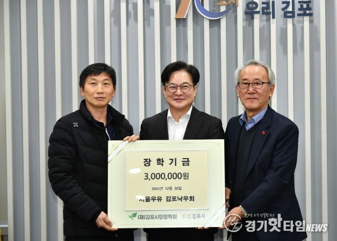 [경기핫타임뉴스=김형철 기자] 서울우유 김포낙우회가 지역사회의 어려운 소외계층 학생들에게 도움을 주고자 김포시민장학회에 300만원의 장학금을 전달했다.