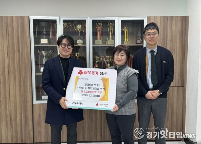 오미근 백석1동장은 “어려운 경제 여건 속에서도 이웃을 위한 나눔에 동참해 주신 게이트비젼㈜ 임직원 여러분께 깊이 감사드린다”며 “소중한 성금이 꼭 필요한 분들께 잘 전달될 수 있도록 최선을 다하겠다”라고 말했다.