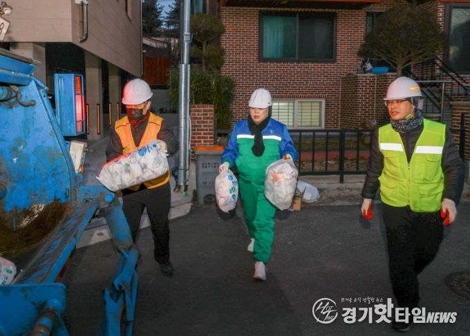 [경기핫타임뉴스=김삼영 기자] 과천시는 31일, 연말을 맞아 환경미화원의 근무 현장을 점검하고, 현장의 의견을 청취하기 위해 새벽 청소 작업에 함께했다.