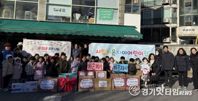 이날 시립푸르지오 어린이집과 시립가온자이 어린이집 원생 및 교사 30여 명은 직접 마련한 과자, 라면, 생필품 등을 소이곳간에 전달하며 나눔의 가치를 실천했다.