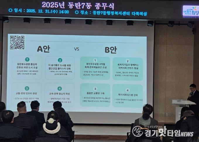 [경기핫타임뉴스=김삼영 기자] 화성특례시 동탄7동은 12월 31일, 동탄7동 행정복지센터 다목적실에서 ‘2025년 종무식’을 열고 한 해를 마무리했다.