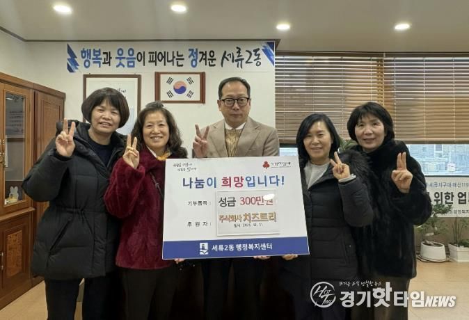 [경기핫타임뉴스=김삼영 기자] 지난 31일, 수원시 권선구 세류동에 소재한 ㈜치즈트리는 이웃사랑 성금 300만 원을 세류2동 행정복지센터에 후원했다.