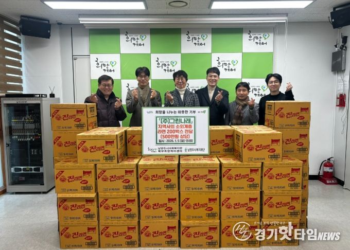 [경기핫타임뉴스=김형철 기자] 남양주시는 지난 5일 ㈜그린나래가 지역 내 취약계층의 식생활 지원을 위해 라면 200박스(약 500만 원 상당)를 북부희망케어센터에 전달했다고 7일 밝혔다.