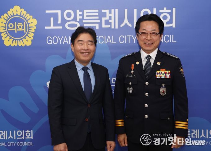 [경기핫타임뉴스=김형철 기자] 고양특례시의회 김운남 의장은 9일, 강기택 일산서부경찰서장과 면담을 갖고 대화동 킨텍스 지원부지 인근 원형육교 주변 보행환경 개선 방안에 대해 의견을 나눴다.
