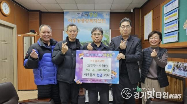 [경기핫타임뉴스=김형철 기자] 여주시 여흥동 소재 기독교 대한감리회 여흥교회는 지난 12일 여흥동행정복지센터를 방문해 지역 내 어려운 이웃을 돕기 위한 성금 100만원을 기탁했다.