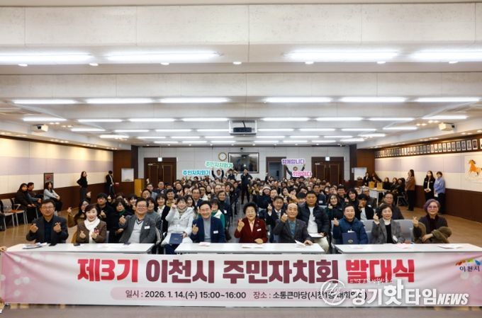 [경기핫타임뉴스=김형철 기자] 이천시는 지난 14일 시청 소통큰마당에서 제3기 이천시 주민자치회 발대식을 개최했다. 김경희 이천시장, 박명서 이천시의회 의장 및 시의원을 비롯하여 제3기 주민자치회 위원 140여 명이 참석한 이번 행사로 제3기 주민자치회의 출범을 알리고 본격적인 활동의 시작을 함께 축하했다.